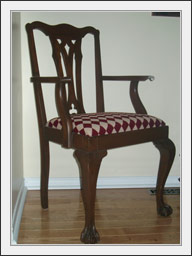This weekend was spring in every sense. Cleaning of the house was first and foremost as we prepared ourselves for Heather's grandmother's first visit to the place. While we were at it, we bought 6 yards of new material and foam, and we recovered our dining room chairs. It was far easier than I expected (as these kinds of things tend to be) and I have to take full credit for choosing the pattern.